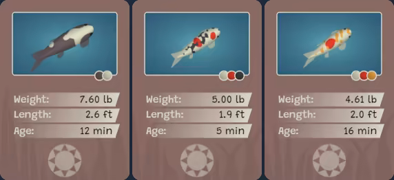 Store the best koi as collectible trading cards, and let the koi book guide you towards new undiscovered mutations.