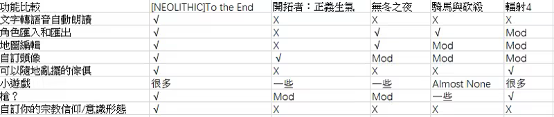 一些不那麼常見的遊戲內容: