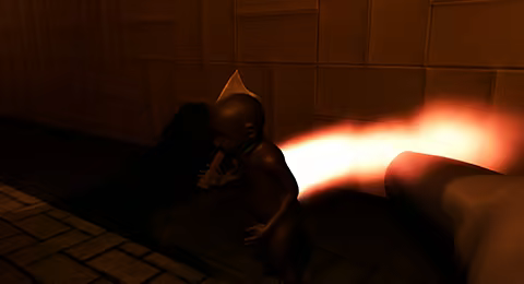 You are the Black Baby, forever without hope, forever without light. Traverse through a maze full of naked giants with massive head indents that try to crush your skull.