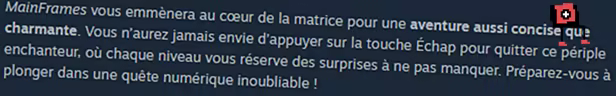 MainFrames est un jeu de plateformes aussi charmant qu’inventif dans lequel vous devez aider Floppy à naviguer à travers le bureau et les fenêtres d’un moniteur PC. Vous n’aurez pas envie d’appuyer sur la touche Échap pour quitter ce périple enchanteur !