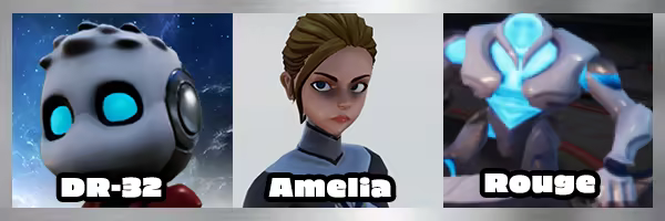 Our Princess: Amelia is a confident young princess. She was kidnapped by some rogue sentry robots. She waits anxiously for her captain of the guard DR-32 to save her.