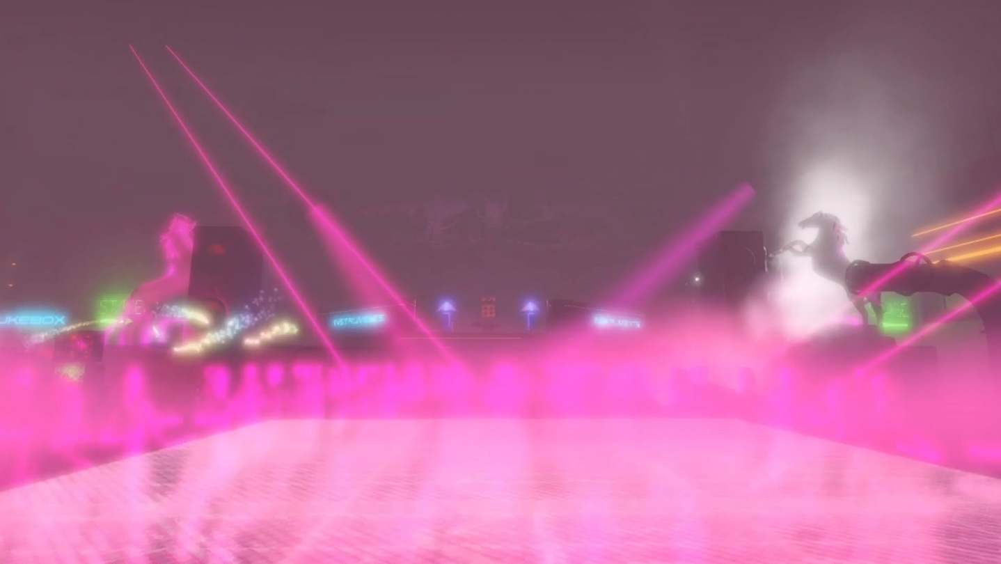 Explore a surreal nightclub drenched in neon and haze. Create music, play arcade games, discover the whole labyrinthine club, and leave a message for future visitors.