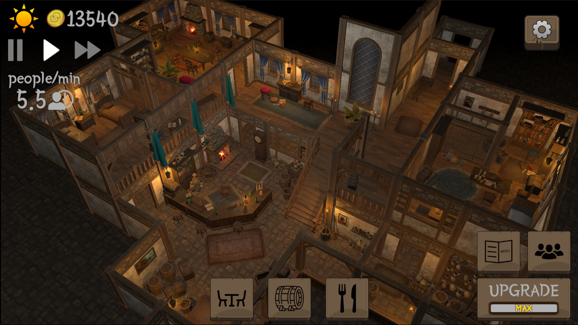 Optimize your seating arrangement to allow your staff to be as fast as possible, upgrade and expand to attract even more patrons and spread your business to include a hotel, a weapon shop and maybe even a medieval food delivery service!