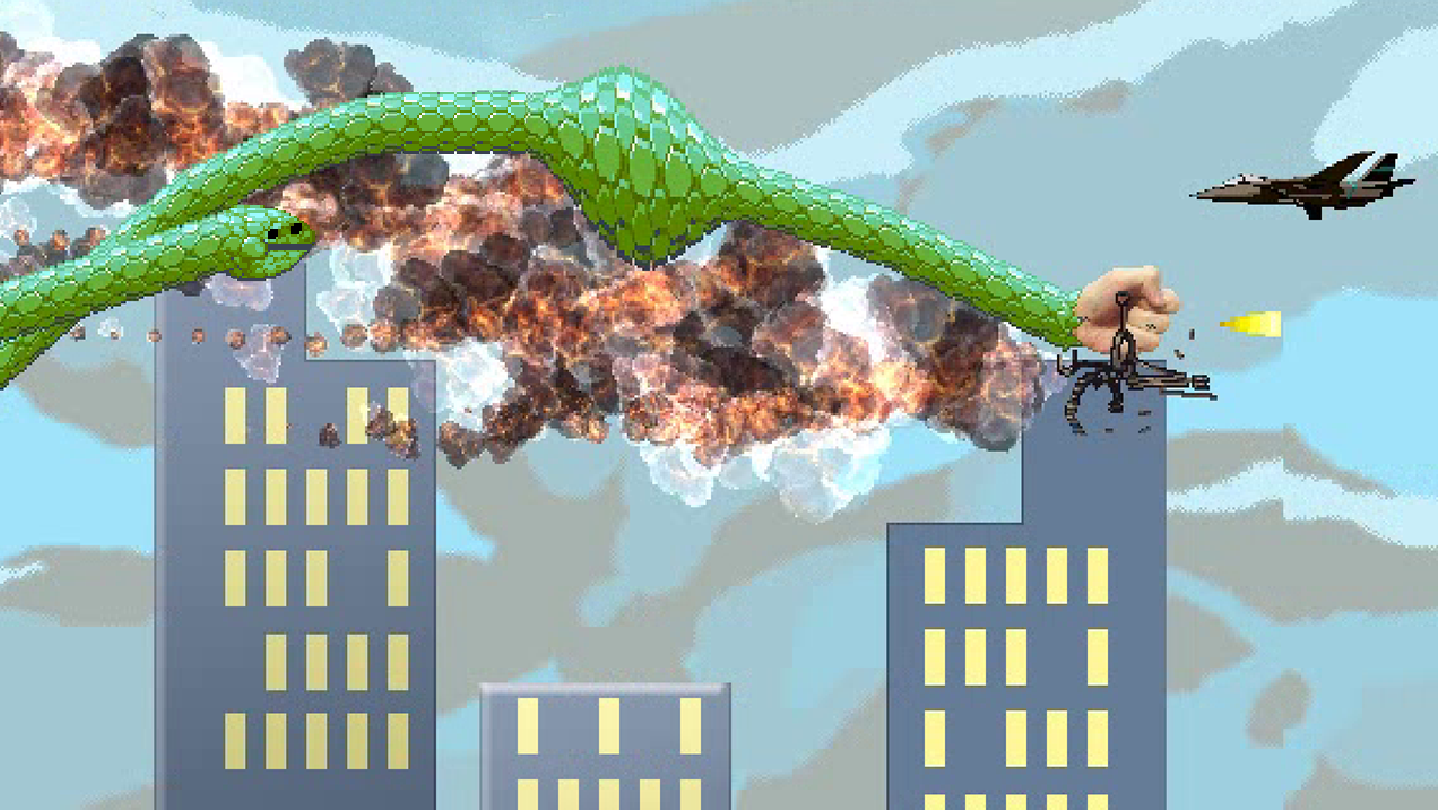 #Snake2 merges unorthodox, technical, soul-crushing bullet hell difficulty with that classic "Snake" tail-growing family fun we all know and love. Careening through the city at high speed, you will need to grow Snake and maneuver his tail-hand into grabbing machine guns and punching helicopters. All this culminates in a tense showdown with Snake's father, the all-powerful Butt King. Combine this with a high-octane, bass-heavy Buttstep soundtrack by Virt (Jake Kaufman) and you get the frenzied, chaotic adrenaline rush fever dream that Snake was always meant to be.