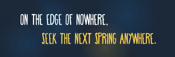 ASCEND the peak in search of the Joyspring. Explore every cavern and cave, crevasse and chasm. Hear the wind sing. Keep dashing and find the spring. And when you return, return smiling.