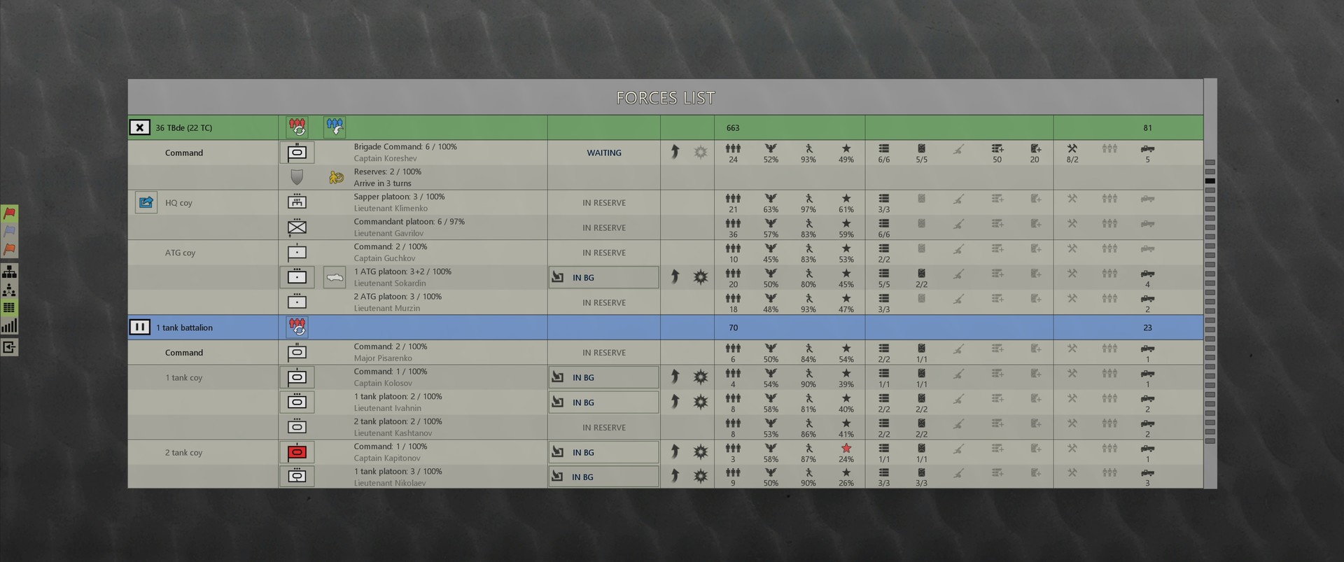 • Historical organizational structure of units at the time of the offensive.