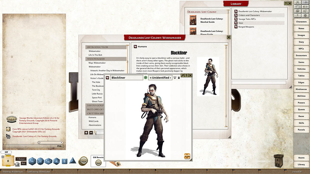 Requires: The free Fantasy Grounds virtual tabletop (VTT) software and a one time purchase of the Savage Worlds ruleset. Compatible with Fantasy Grounds Unity