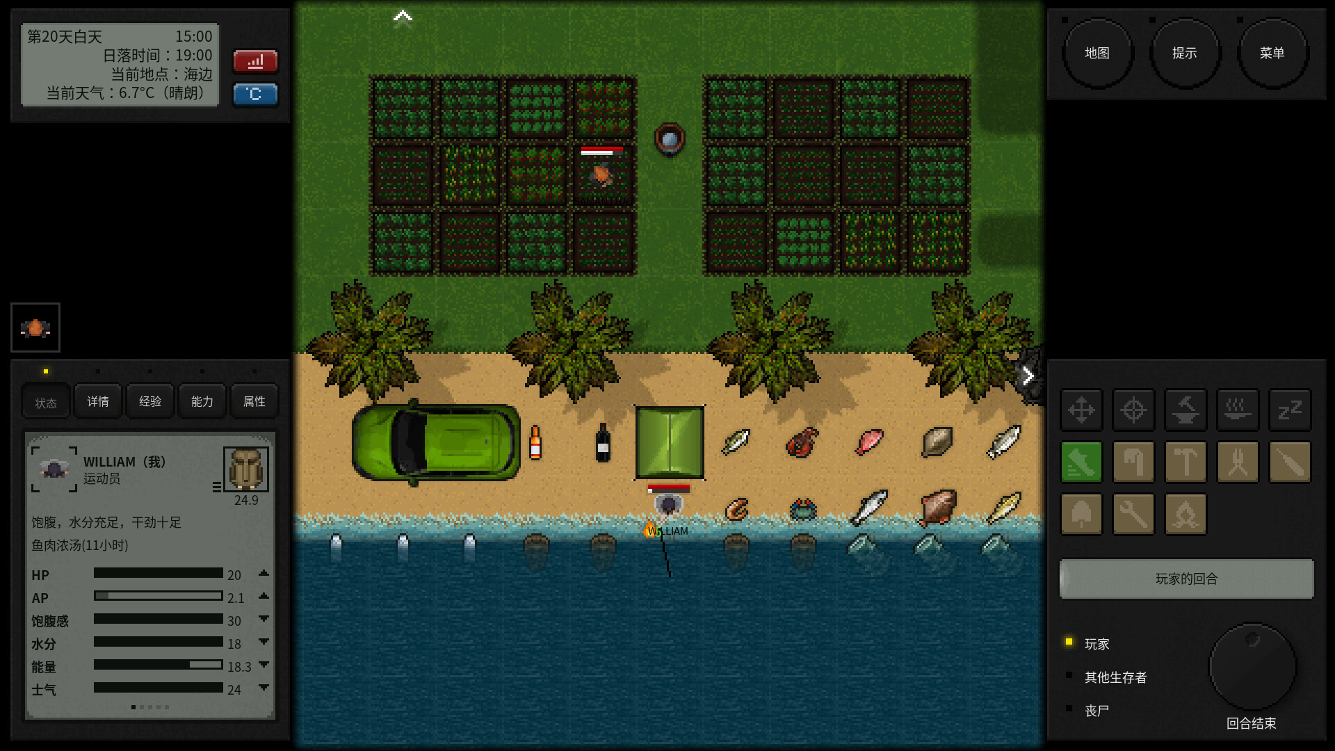 谨慎选择你的下一步行动!你所做的每一个动作和决定都会消耗你的行动点数(AP)。合理管理你的AP是生存的关键。用得太少,你可能找不到生存所需的资源。用得太多,你可能会让自己暴露在危险之下。