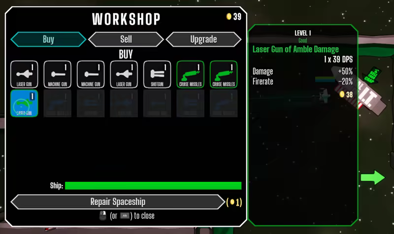 • Buy, sell or upgrade weapons at the workshop.