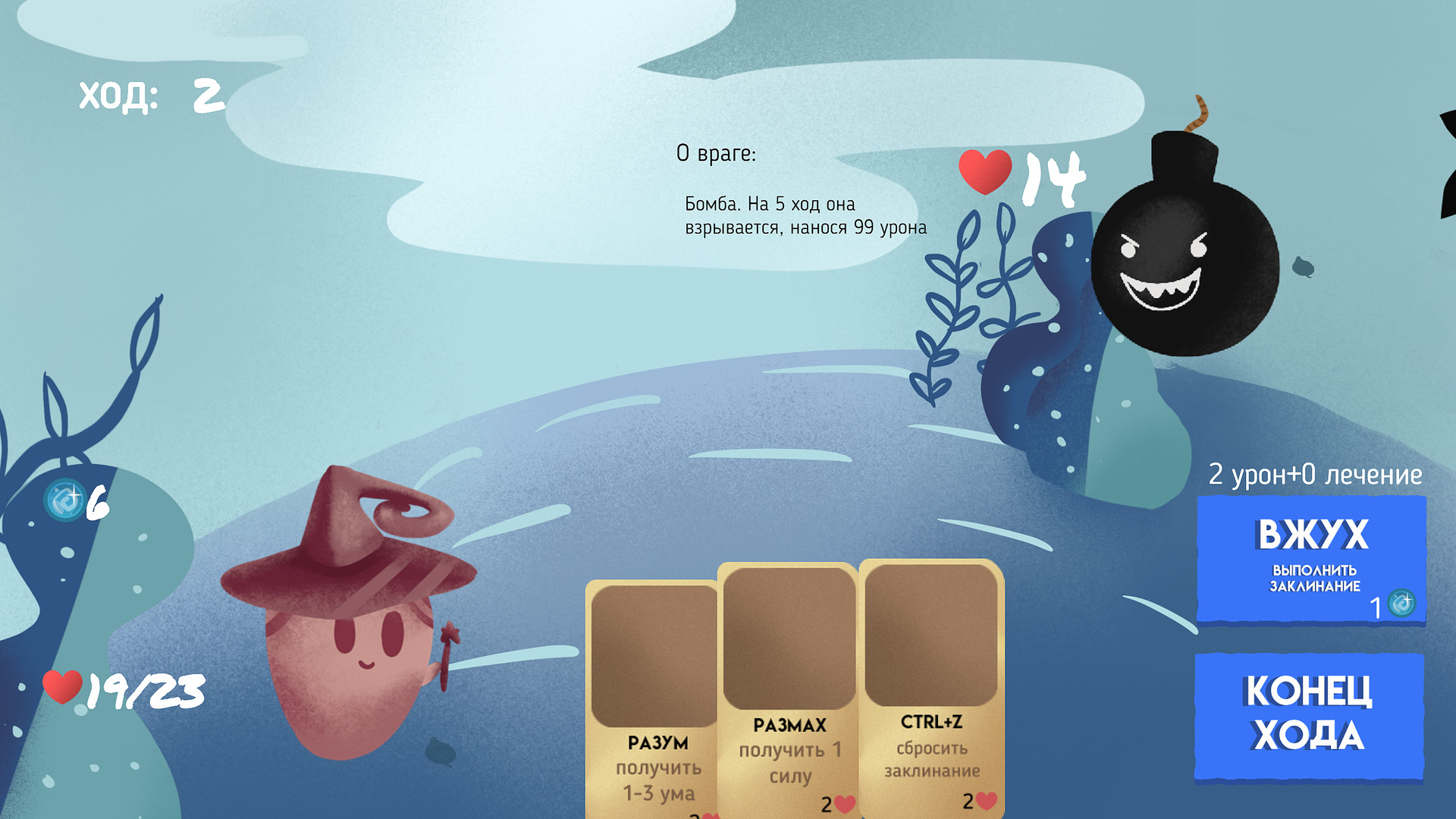 • Карточный рогалик со случайной генерацией: при каждом прохождении враги и карты будут разными