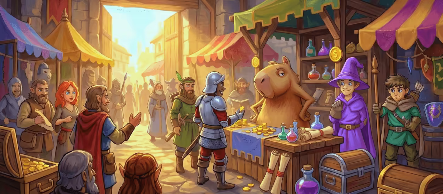 In Kakele, the market is interconnected across servers worldwide and entirely player-driven. Buy and trade with over 10,000 players across the servers.