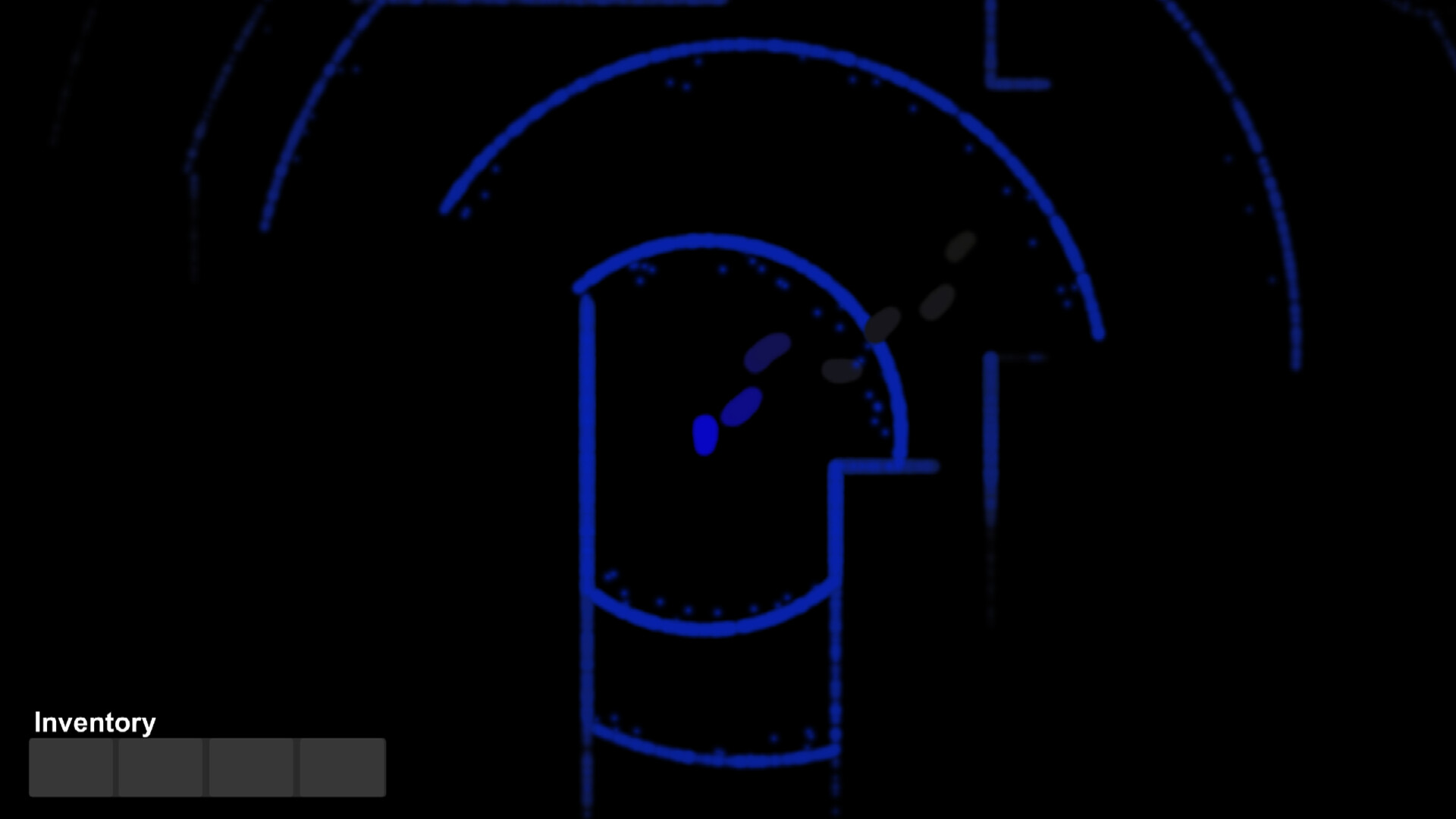 A 2d game with a view from above, where you are in the shoes of a blind protagonist and have to find a way to escape from a mansion by collecting various items scattered around it at random while being chased by a monster.