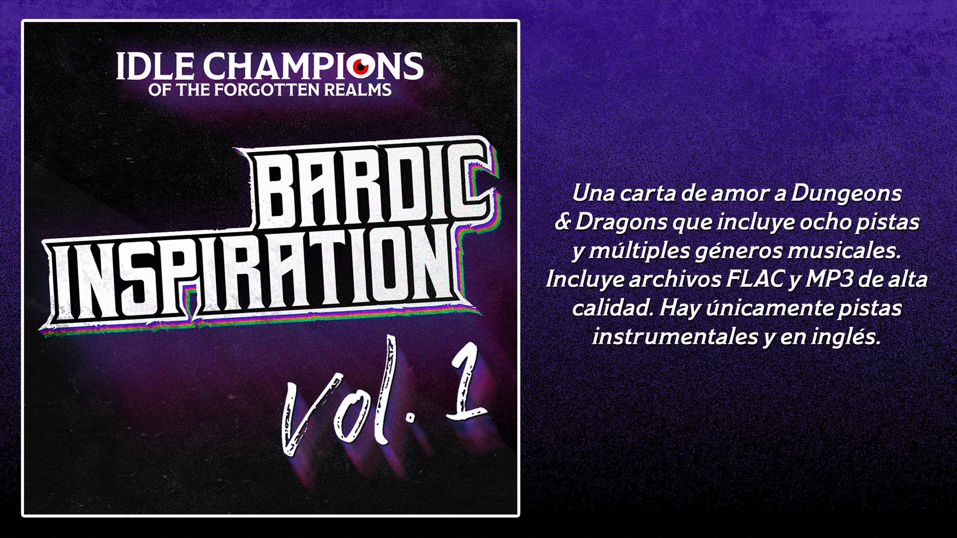 Idle Champions of the Forgotten Realms: Bardic Inspiration (banda sonora), volumen 1 es una carta de amor a Dungeons & Dragons que incluye ocho pistas y múltiples géneros musicales.