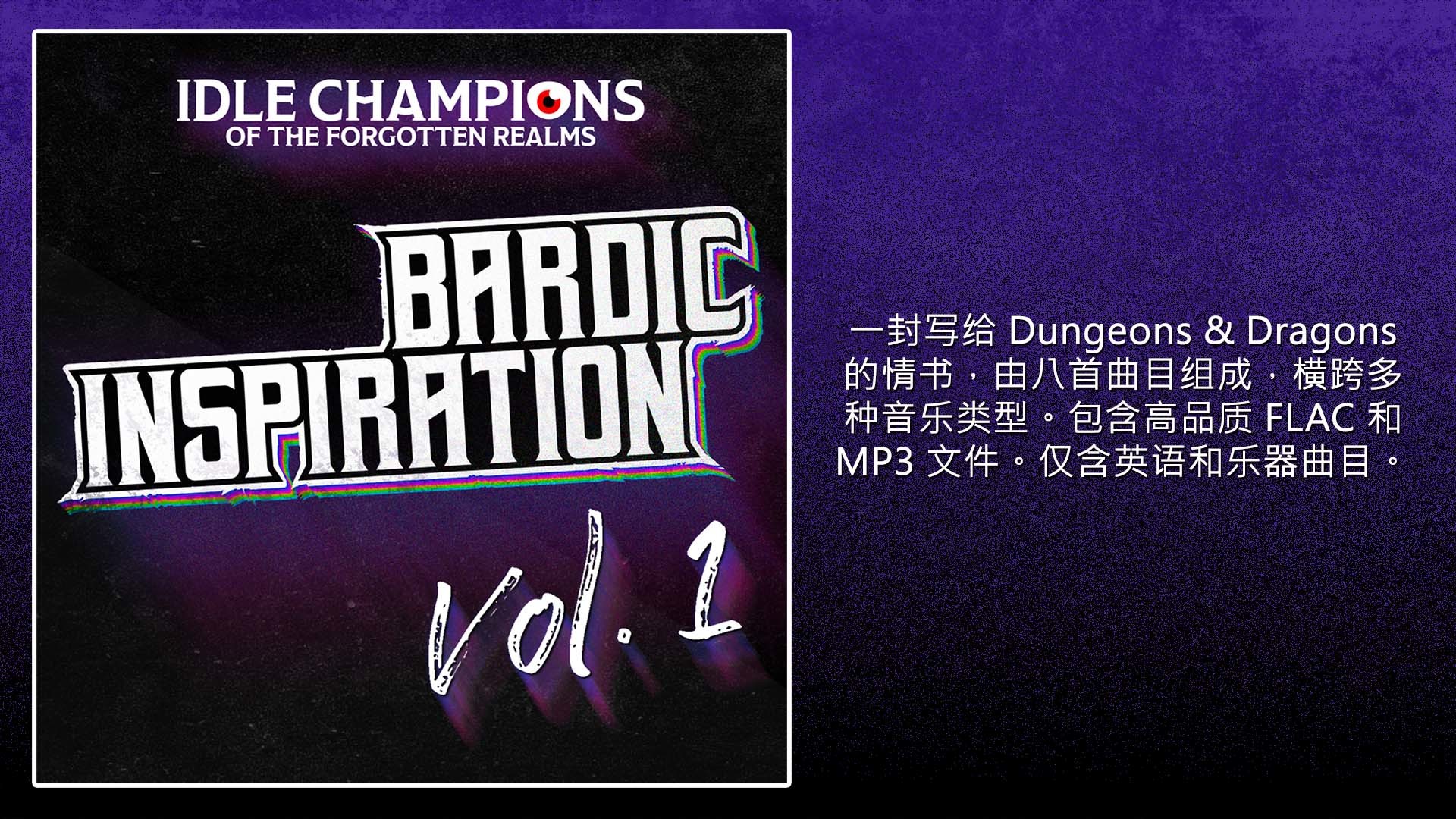 The Idle Champions of the Forgotten Realms:吟游诗人的灵感第 1 辑原声音轨是一封写给 Dungeons & Dragons 的情书,包含八首曲目,横跨多种音乐类型。