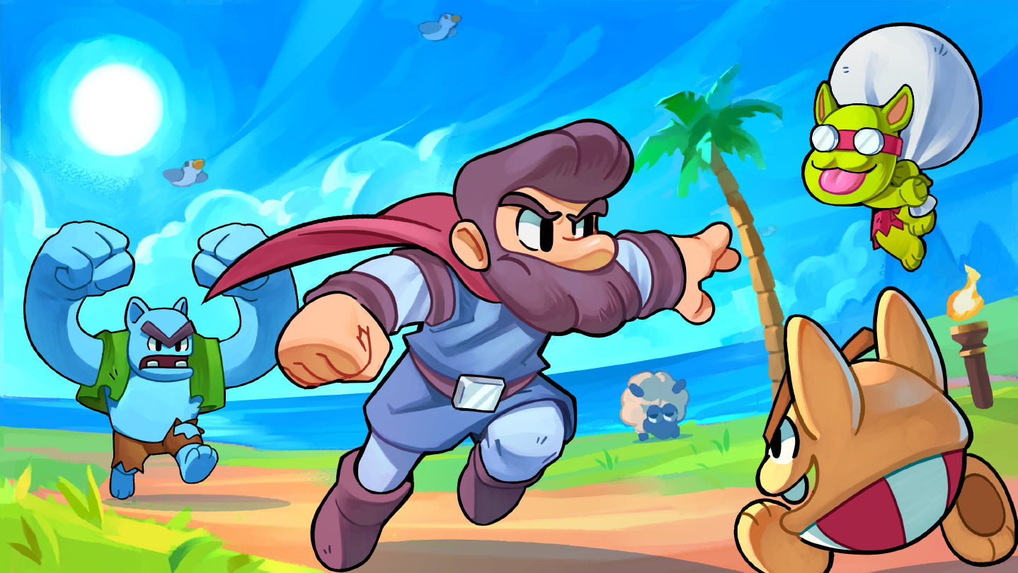 Run and jump through tropical 16-bit locales in this traditional platformer! Take control of Branson and fend off foes with his mighty shapeshifting beard as he fights to reclaim his stolen goods.
