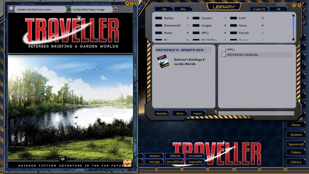 Requires: The free Fantasy Grounds virtual tabletop (VTT) software and a one time purchase of the Traveller 2E (Mongoose) ruleset.