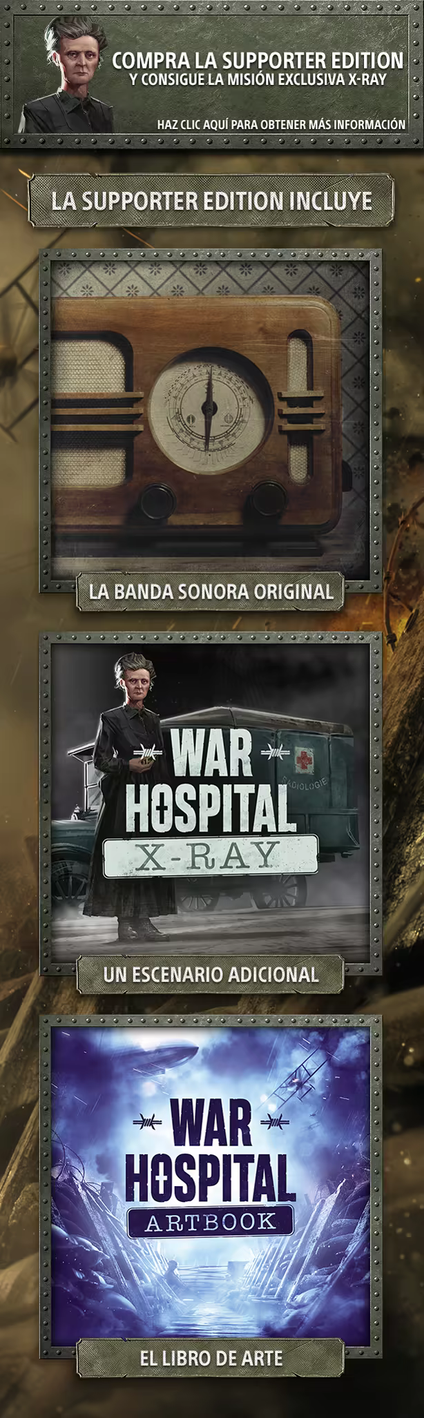 Incluye 4 artículos: War Hospital, War Hospital - Original Soundtrack, War Hospital - Digital Artbook, War Hospital - X-ray