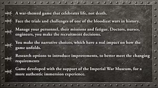 Take charge of a WW1 field hospital on the Western Front, and make all the decisions necessary to help the soldiers recover and to support the war effort. In this narrative management game, you are the last bastion of humanity.