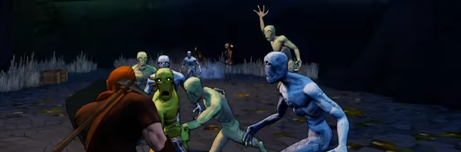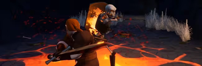 Learn to block, dodge and fight with simple iron weapons. Later, dodge frostbolts, avoid fireballs, and employ an arsenal of magical runes and weapons to devastate a hectic and fast-paced legion of enemies.