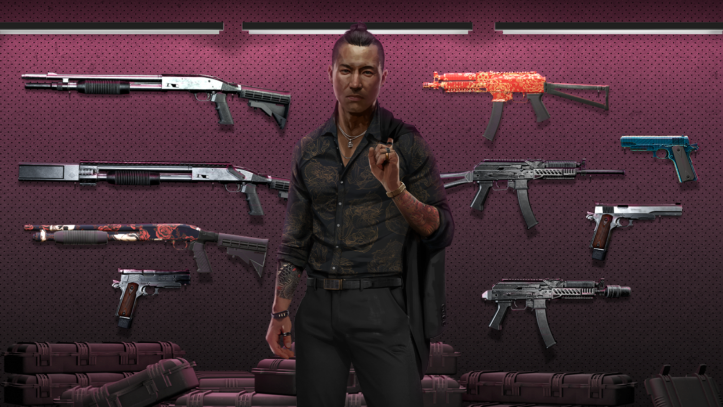 The Jiu Feng Smuggler Pack includes a shotgun, an SMG and a pistol (with akimbo options for the latter two), along with 9 mods and 20 weapon colors.