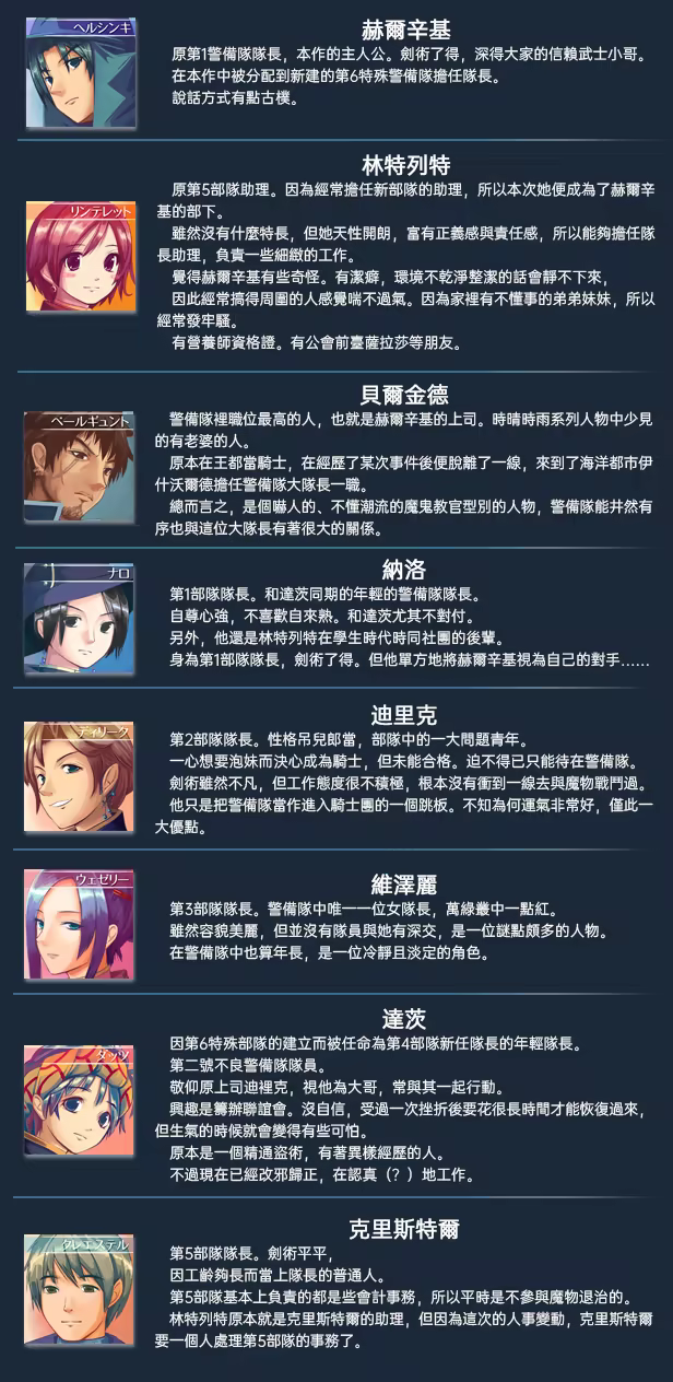 玩家將扮演警備隊隊長赫爾辛基,培養新建立的一支警備部隊。