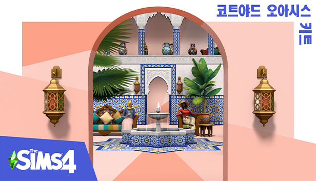 The Sims™ 4 코트야드 오아시스 키트*를 활용하여 심들의 집을 모로코 전통 건축물에서 영감을 얻은 푸른 녹음과 활기가 넘치는 공간으로 변신시키세요! 분수대 주변에서 편히 휴식하거나 장식 타일을 감상하거나 절대적 조화 속에서 가족과 평화로운 시간을 보내세요.