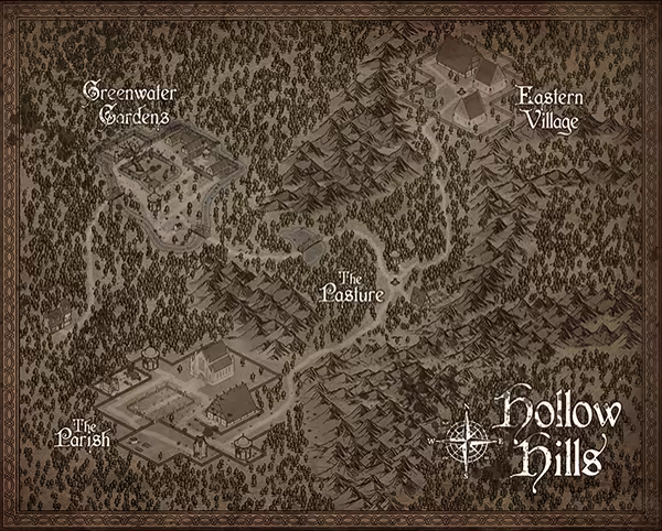 • Hollow Hills: Explore locations like The Pasture, The Parish, Eastern Village, Greenwater Gardens, and more.