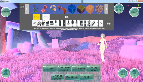 The game is constantly under development to improve the demand functions recognized by the girl avatar. Thus, players can enjoy more demand functions in the future. Currently, the girl avatar can feel thirsty and drink water in some scenes (not all). She also displays excitement about playing with dinosaurs on the Dinosaur Island scene.