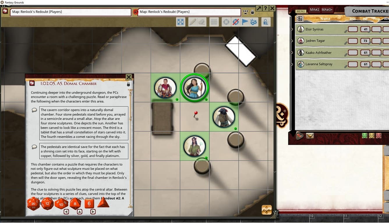 • Tokens for each encounter are all pre-placed in starting locations on the map. You can edit these on the fly.