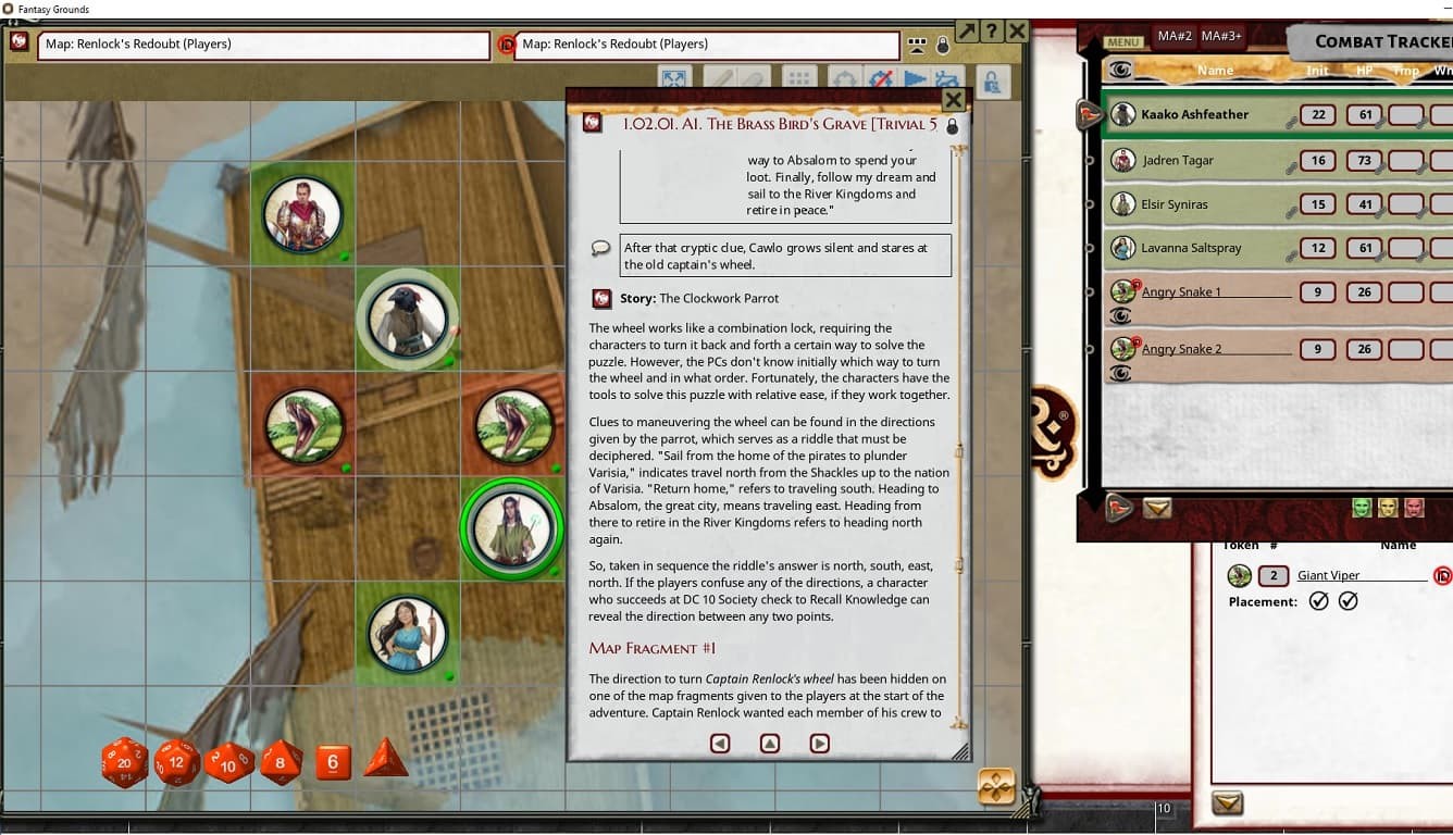 • Tokens for each encounter are all pre-placed in starting locations on the map. You can edit these on the fly.