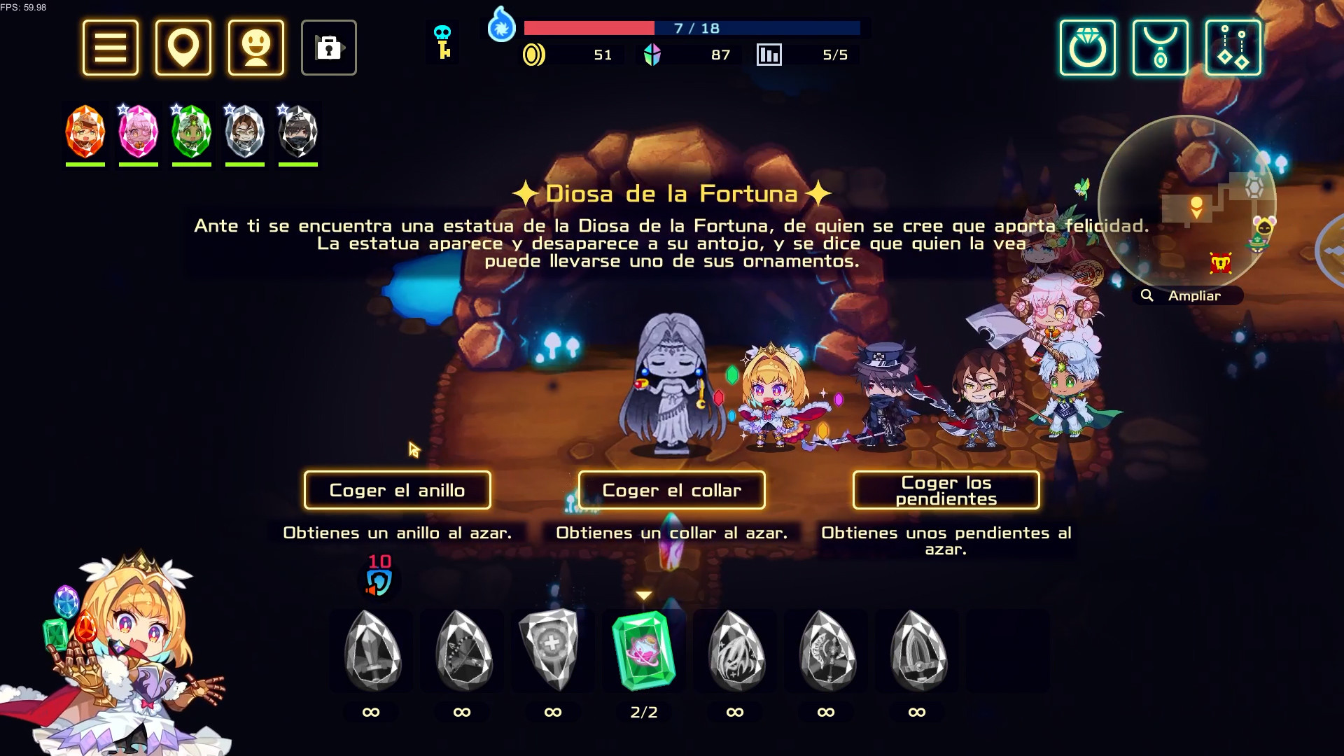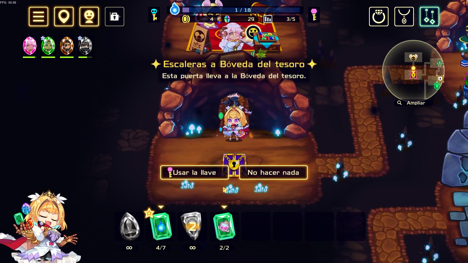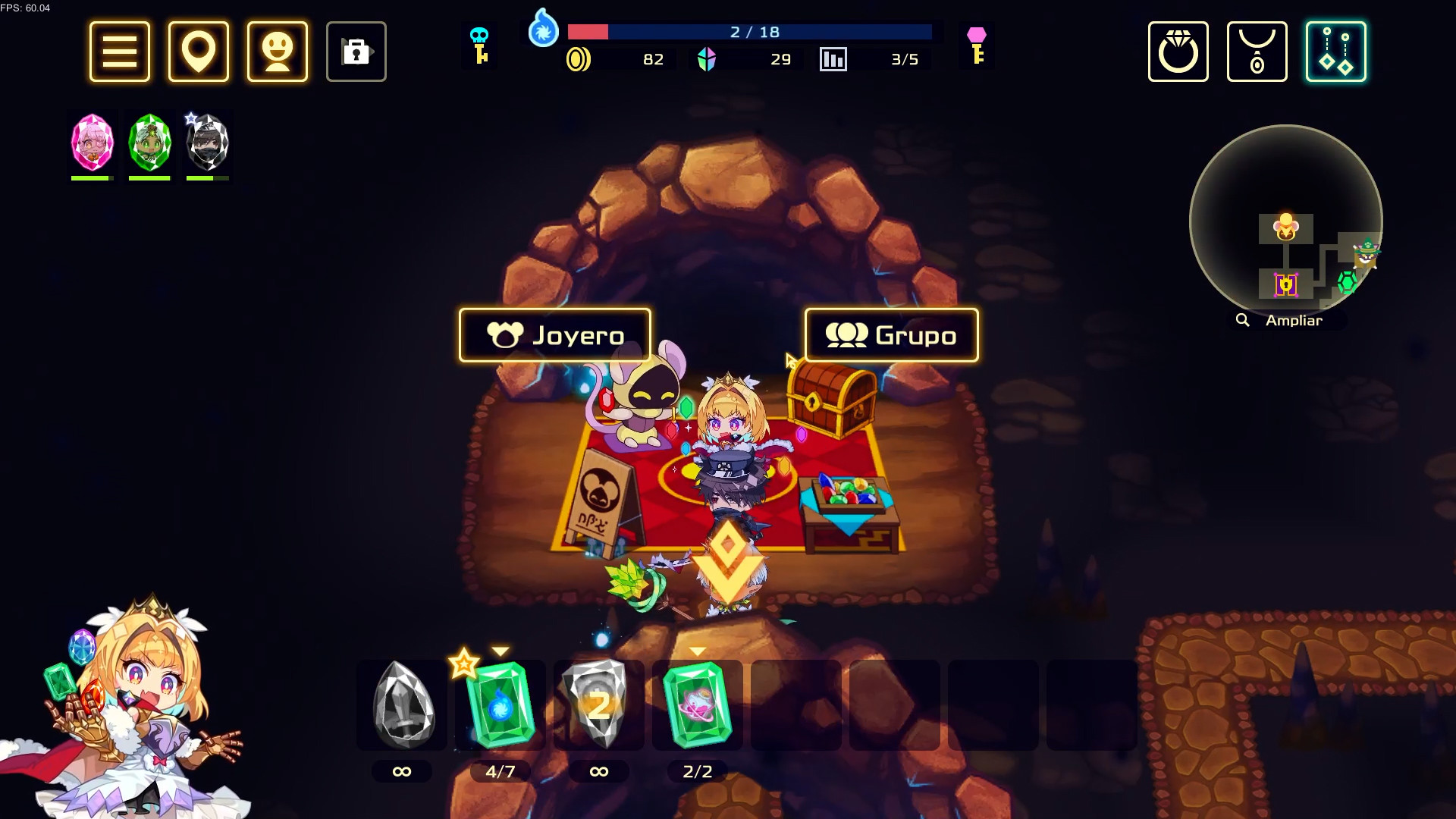 Reúne las joyas (unidades) que se encuentran por toda la mazmorra y añádelas a tu grupo. ¡Conseguir duplicados de la misma joya te permitirá hacerla más fuerte!