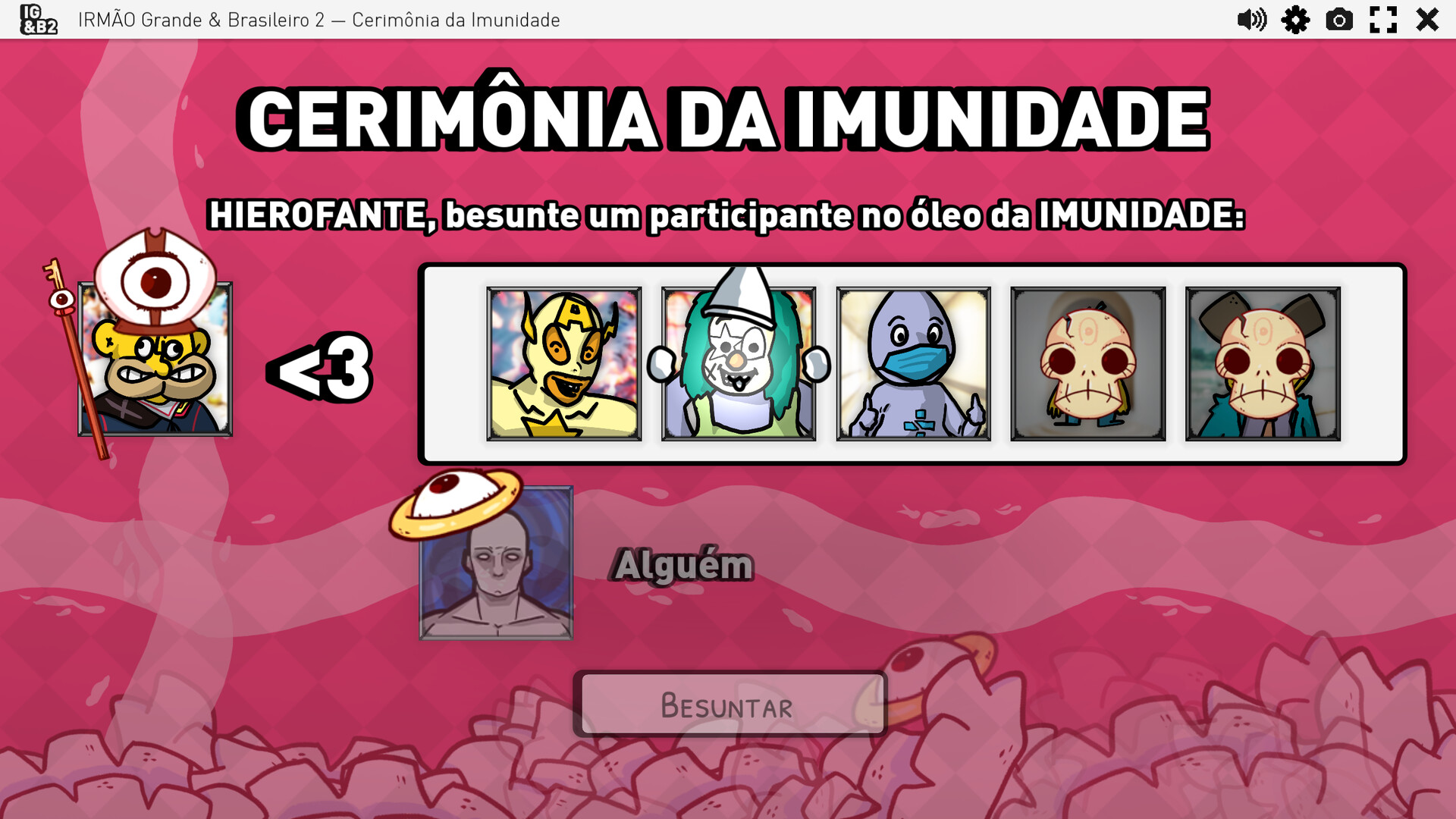 Em IG&B2 você forma um elenco de participantes composto das suas pessoas favoritas. Seus amigos, os personagens daquele desenho que você jura que nunca assistiu, e até os figurões da política e do entretenimento. As possibilidades são infinitas! (as possibilidades podem não ser infinitas)