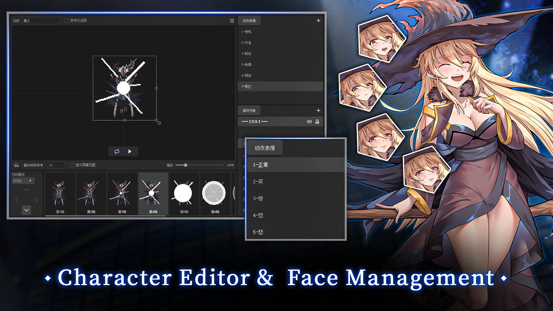 Character & Standing Avatar Editor allow you to manage the sequence frame of your character's actions, expressions, and equips all in one place.