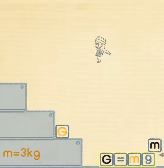 You can change the size of G by making the box girl jump higher; Make the box heavier...