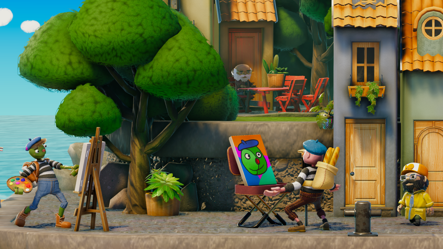 Draw and sell art on the go using your handy foldable easel. Explore the endearing puppet town, get to know the residents and what makes them tick. Help them out with commissions, like drawing a new ad for Steve's restaurant! Or why not buy a studio so you can work from home, just like the good old days?