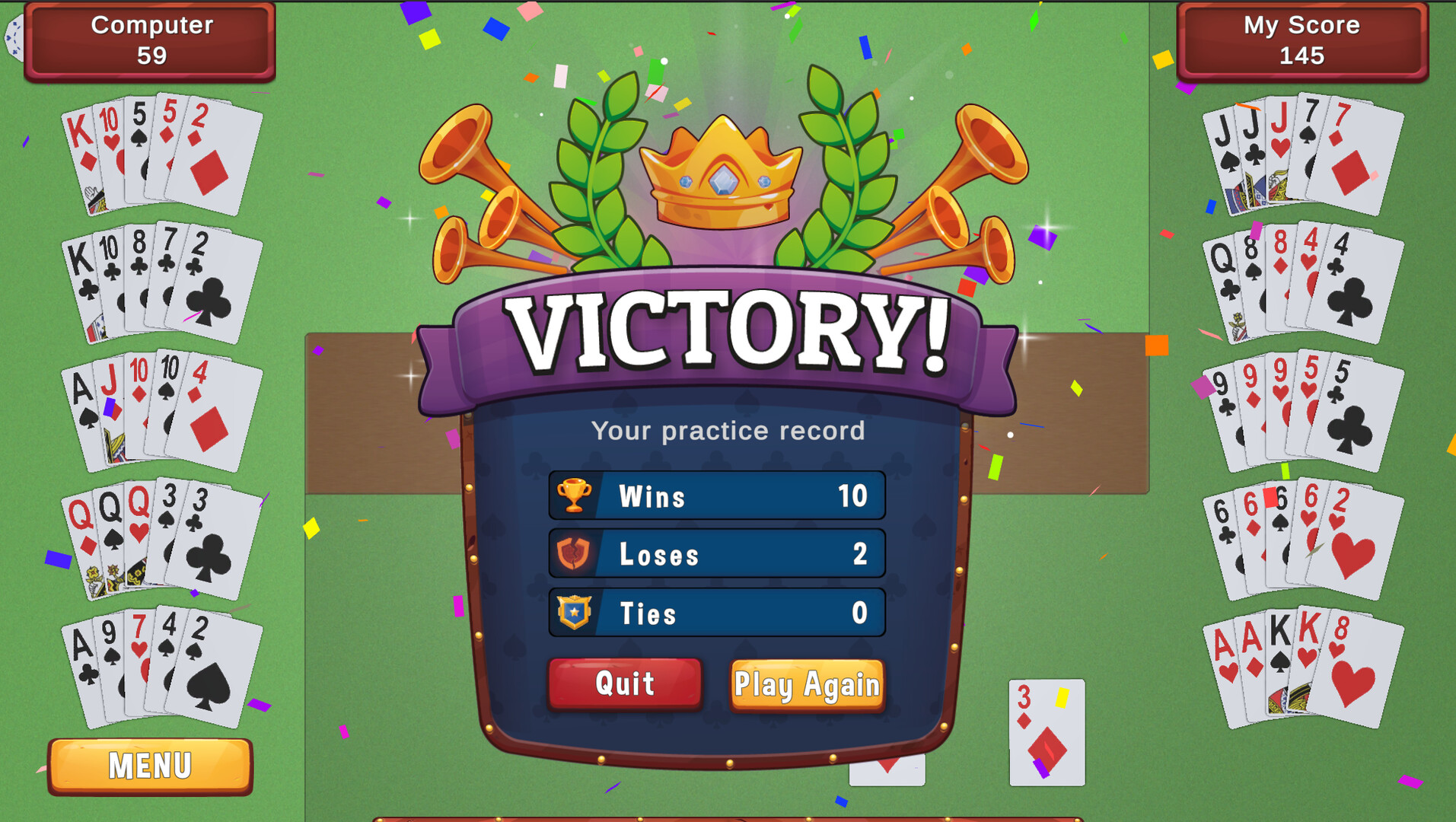 Ten 2 ten Poker is a strategy-heavy 2 player turn based card game where the players take turns building poker hands. Each poker hand you build is worth a certain amount of points. The player with the most points after 5 rounds wins. Supports Single and Multiplayer.