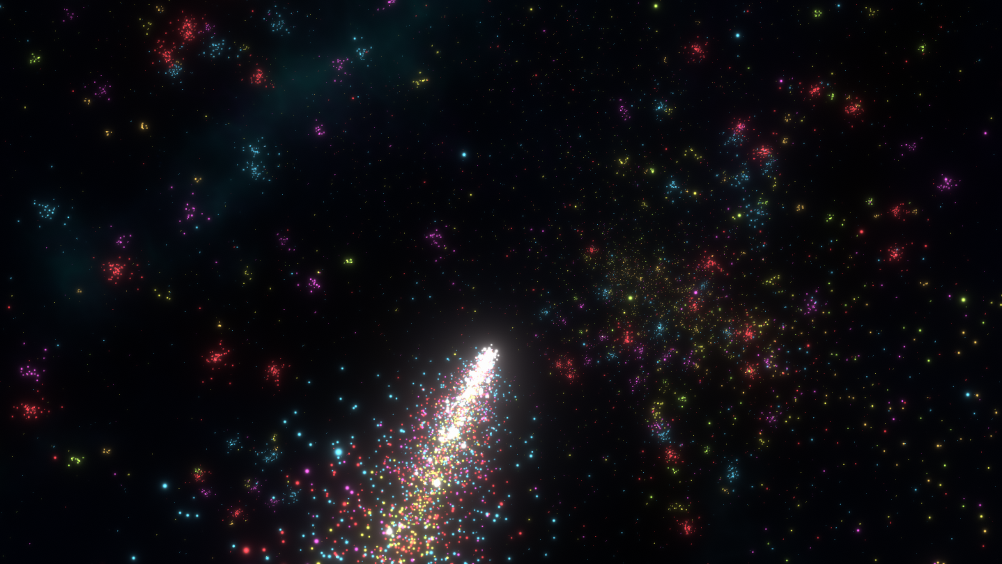 Inspired by the fantastic colorful nebulas stretching across the vast emptiness of space, stardust lets you travel through space and paint the canvas that is the universe with your trail of star dust. You collect different colored particles, steadily growing your trail - in size and in color. No goal, no aim, just floating and relaxing and enjoying the view.
