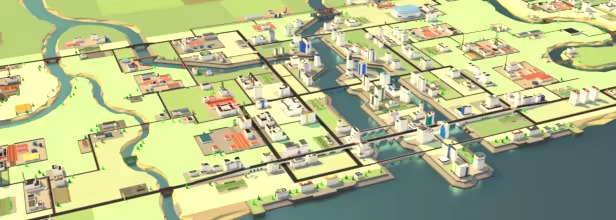 On the map City and Countryside you will be able to develop transport connections between a big oceanfront city and its suburbs.