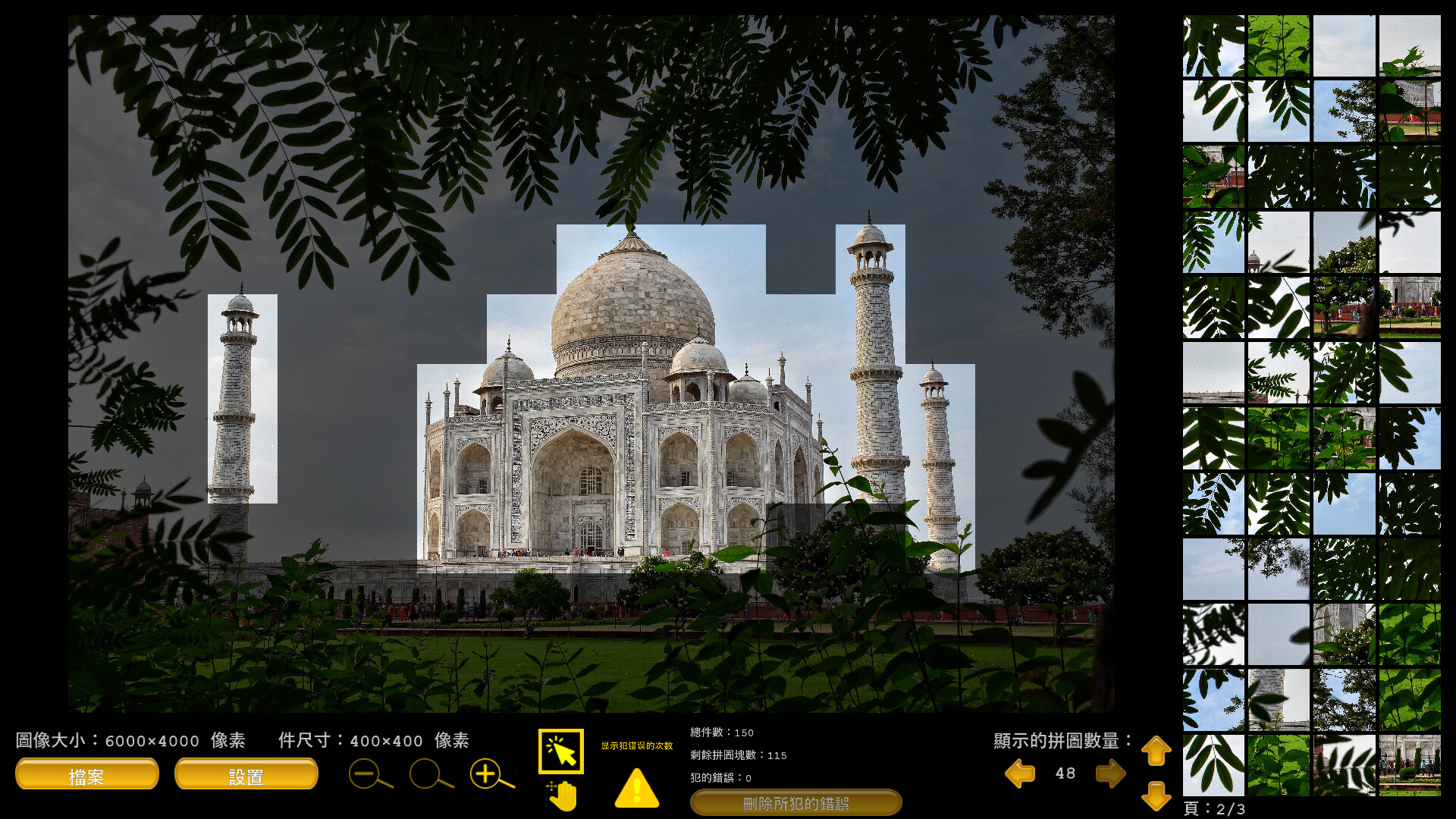 - 比較:當您選擇「比較」選項時,應用程式將以全屏模式顯示指定位置和選定的拼圖(以便於比較)。