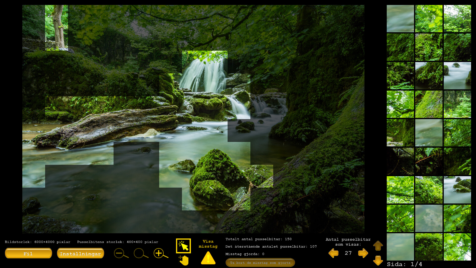 - Hjälp: När du väljer alternativet "Hjälp" kommer programmet att berätta var du ska lägga den valda pusselbiten.