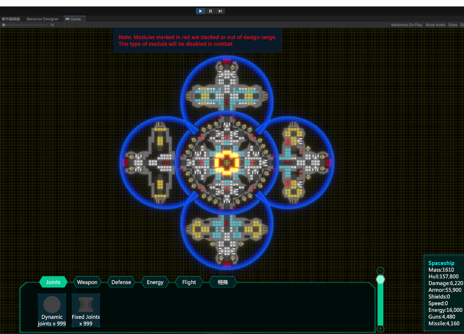 • There’s one thing to be noted!!! The spaceship is not a whole. It is connected by components. The break-down of one key component may reverse the situation. Imagine when you are destroying a component of an enemy spaceship, a chain explosion reaction happened to other components connected to it.