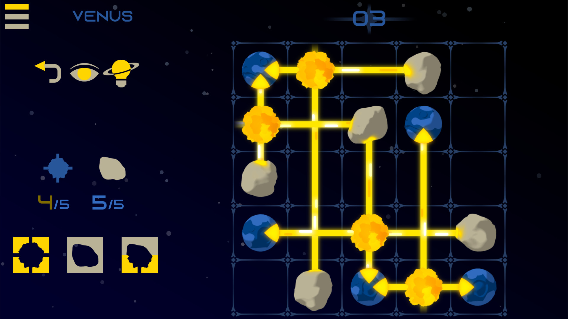 Starlight X-2 er et gådespil med verdensrummet som tema. Placer stjerner og asteroider på smarte måder for at oplyse planeter.