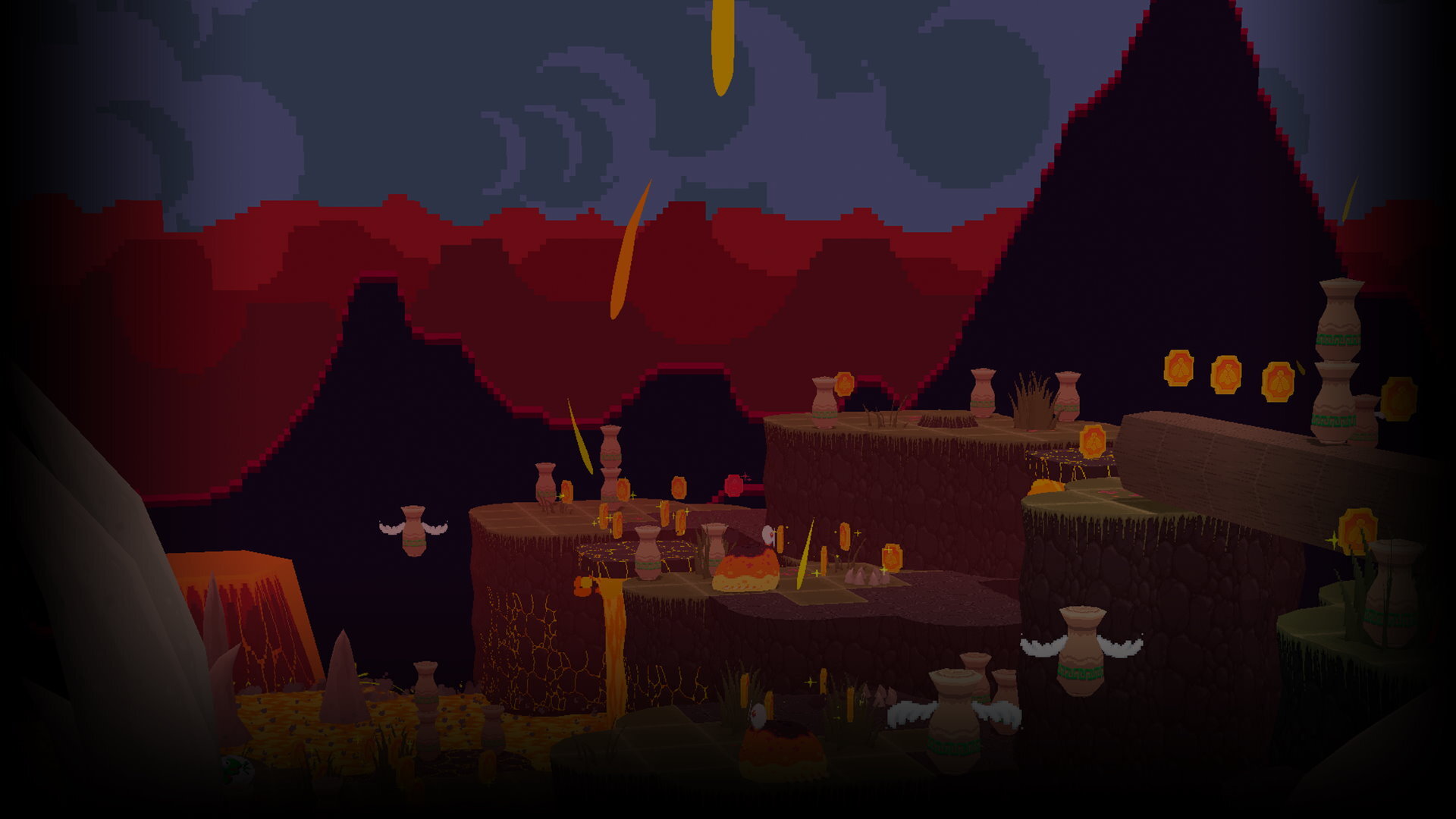 • Explore colorful levels full of crispy pixelated ruins, freezing snow caps, and scorching lava swamps in a modern representation of the lowpoly aesthetic