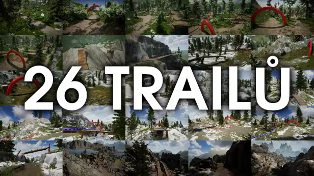 Ručně vytvořené tratě poskytují plynulý a realistický zážitek, takže se budeš cítit, jako by si skutečně letěl terénem. Navrženy tak, aby posouvaly limity toho, co je možné ve virtuální realitě. Ať už se vypořádáváš s technicky náročnou cross-country trasou nebo s rychlým sjezdem, vždy budeš plně ponořen do dění.
