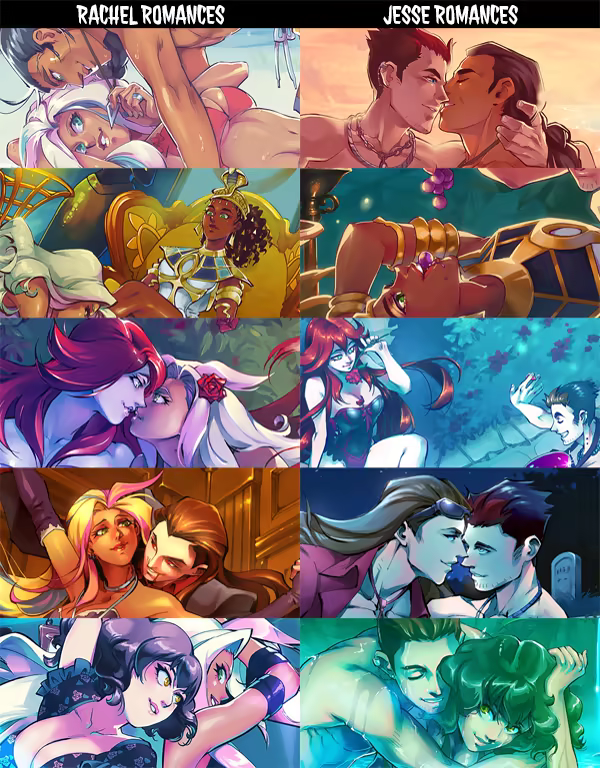 Each love interest can be equally romanced by Rachel or Jesse, but each path is unique.