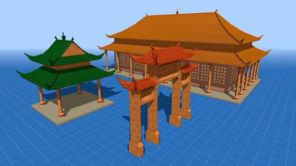 這兩點在匠造奇境對中式建築的良好支持裏有比較明顯的體現。 匠造奇境裏有大量的中式建築風格的標準結構。