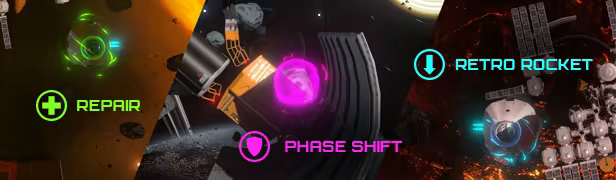 Use power-ups to your advantage by changing the behaviour of your space pod. Phase Shift through solid objects, slow your descent for more reaction time, and repair damage to extend your run.