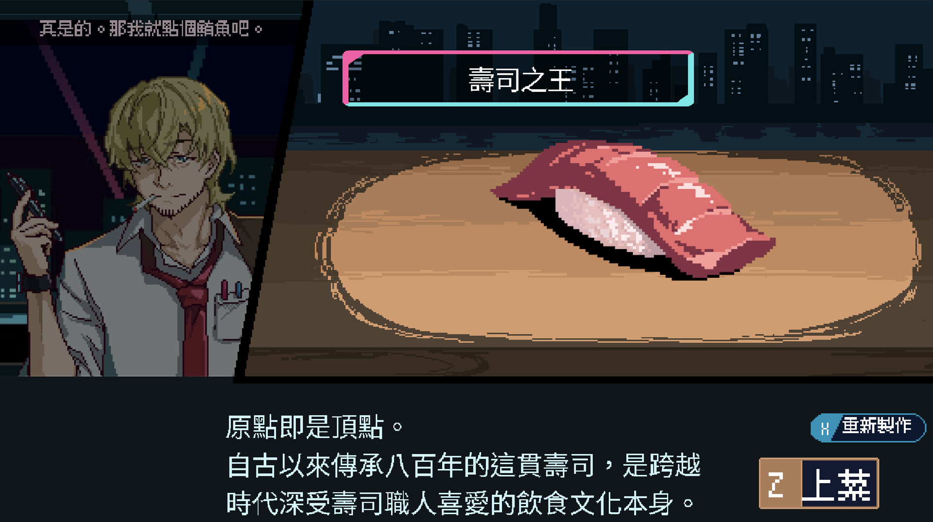 玩家將傾聽會話,有時提出疑問,並依據客人的心情與背景選擇食材與風格,為他們送上一碟碟壽司。