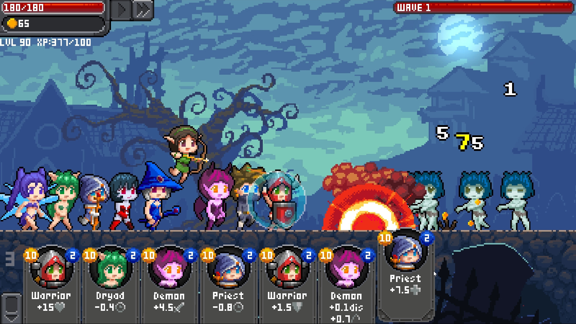 • Upgrade your characters by fighting off waves of enemies and finding new heroes!