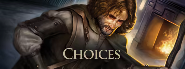 Intrigue has cards that give players a choice between two or more options. A player given a choice picks any choice, even if unable to do the instruction, then does as much of it as they can.